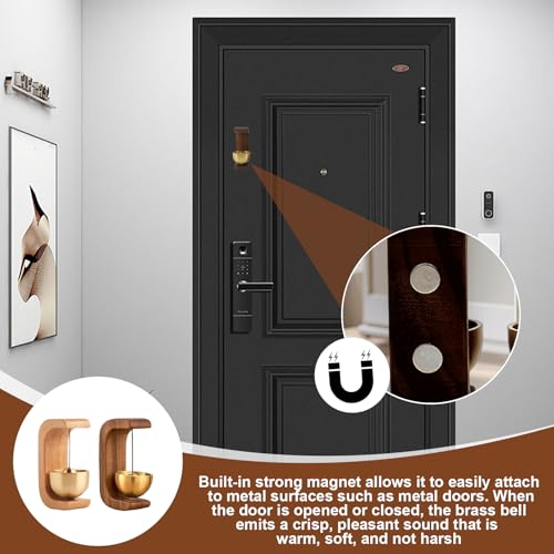 2 peças de campainha magnética de madeira, campainha magnética em forma de C, campainha de lojista para abertura de porta, sinos para maçaneta de porta para...
