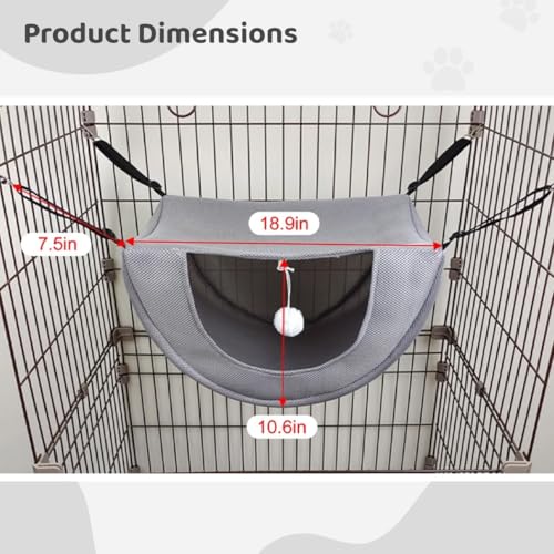 2 peças de redes suspensas para gaiola para animais de estimação, camas de tecido de malha de ar para gatos, coelhos, gatinhos, uso interno, alças ajustáveis, cinza e branco