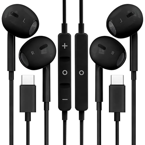2 unidades de fones de ouvido USB C para iPhone 16/15 fones de ouvido de telefone com microfone e controle de volume HiFi estéreo tipo C para Galaxy...