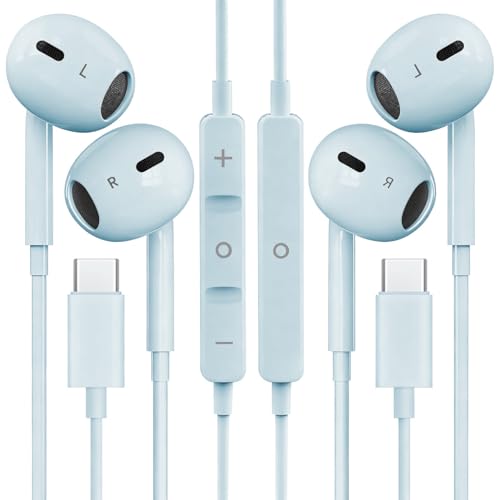 2 unidades de fones de ouvido USB C para iPhone 16/15 fones de ouvido de telefone com microfone e controle de volume HiFi estéreo tipo C para Galaxy...