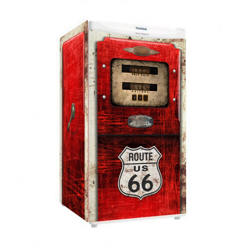 adesivo personalizado para frigobar tema bomba combustivel retrô vermelha