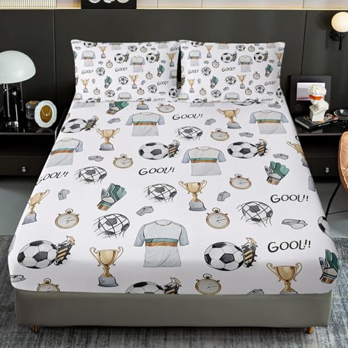- Tamanho solteiro: crie um ambiente aconchegante e confortável para dormir com nossos lençóis de futebol exclusivos e inovadores. As cores vibrantes refrescam instantaneamente seu quarto. O conjunto inclui 1 lençol com elástico (99 cm L x 199 cm C x 40 cm A) e 2 fronhas (50 cm x 76 cm). Sem lençol de cima