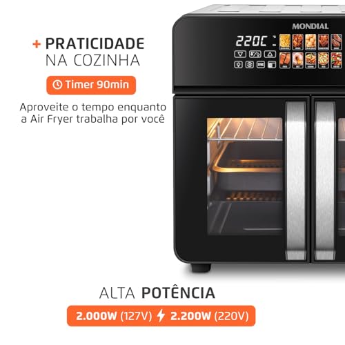 Air Fryer Forno 25L French Door, Mondial, Preto/Inox, 2000W, 127V – AFDO-25L-FD