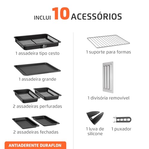 - Capacidade de 25 Litros: Espaço sob medida para lasanhas, assados e pizzas de até 28 cm. Ideal para quem busca praticidade e eficiência ao cozinhar grandes porções de uma só vez;