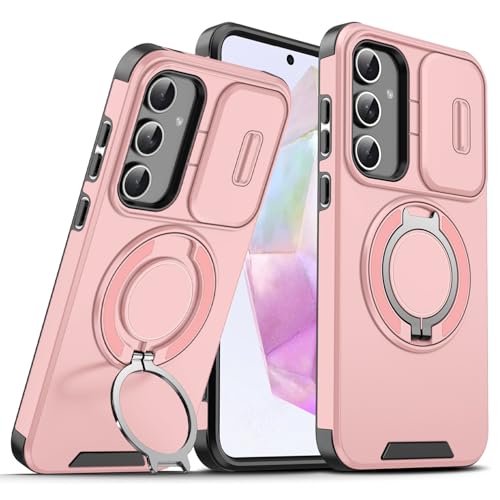 Anlalish Capa compatível com Samsung Galaxy S25 FE com suporte, capa de telefone resistente à prova de choque para Samsung S25 FE com capa de câmera (rosa)