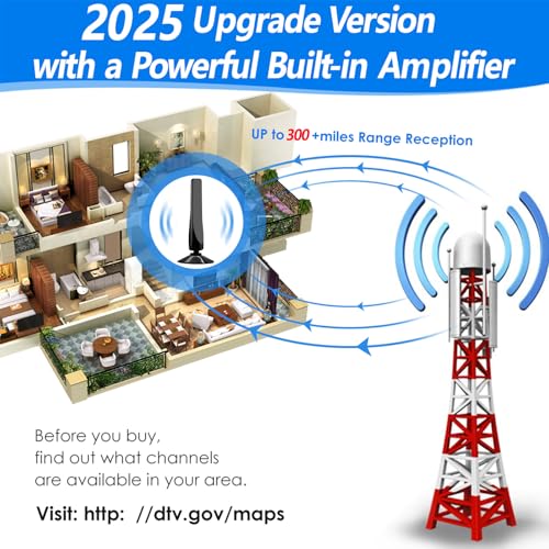 - Antena de TV para Smart TV interna 1080 km de longo alcance com amplificador de sinal amplificador, antena HDTV atualizada 2025 suporta 8K 4K 1080P todas as TVs, recepção 360 portátil