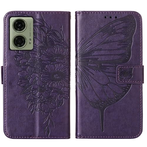Asdsinfor Capa para Motorola E14 4G/G04 4G/G24 4G, capa carteira flip de couro PU com suporte para cartões de crédito fecho magnético capa protetora para Moto G24 4G, borboleta roxa escura YB