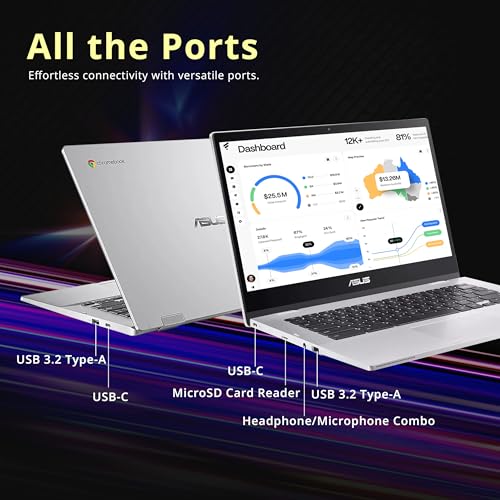 Especificação: ASUS Notebook Chromebook CX1 35.6 cm FHD antirreflexo, Intel Celeron N4500, 4 GB de RAM, 224 GB de armazenamento (conjunto de estação de ancoragem de 64 GB eMMC + 160 GB), gráficos Intel UHD, WiFi 6,