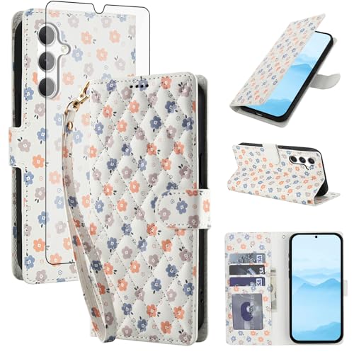 Asuwish Capa de telefone para Samsung Galaxy A25 5G carteira celular com protetor de tela de vidro temperado porta-cartão de flores suporte TPU Kickstand A...