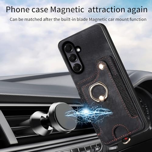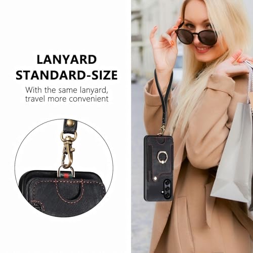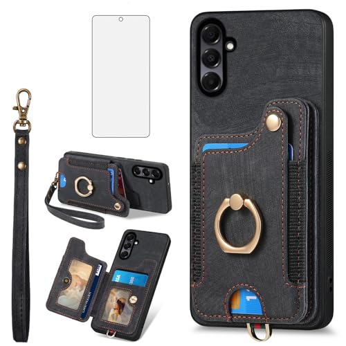 Asuwish Capa de telefone para Samsung Galaxy A56 5G capa carteira com protetor de tela de vidro temperado e alça de pulso RFID suporte de cartão de crédito anel acessórios de celular A 56 56A LTE