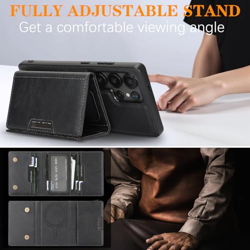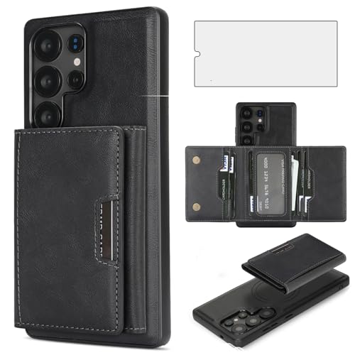 Asuwish Capa de telefone para Samsung Galaxy S25 Ultra 5G carteira magnética destacável com protetor de tela e suporte de cartão de crédito de couro PU slot...