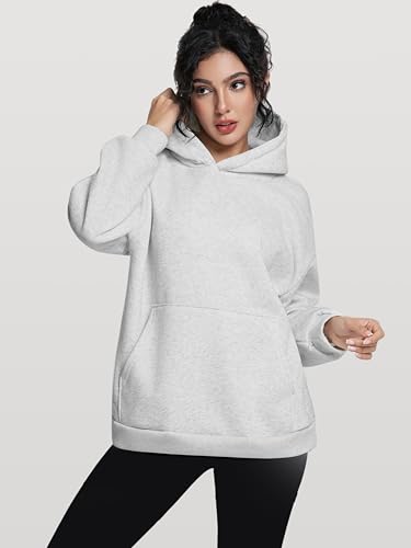 Bogoogmo Moletom feminino com capuz de lã grande e confortável, caimento solto, roupas de outono e inverno, Cinza 02, GG