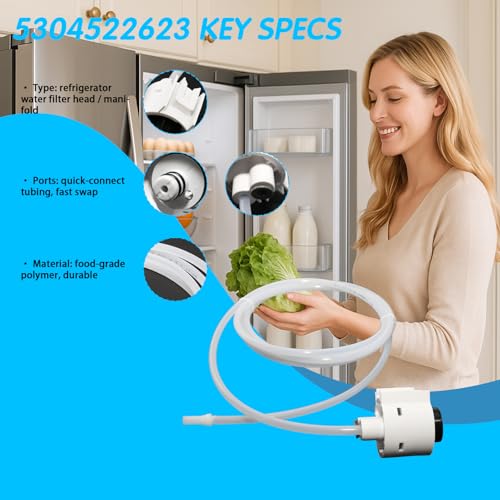 - Grau OEM, pronto para você mesmo — Construído de acordo com as especificações OEM, a cabeça do filtro de água da geladeira 5304522623 restaura o assento adequado do cartucho e o fluxo de água; instalação rápida DIY – desconecte a geladeira e desligue a água antes da substituição para proteger os alimentos e garantir a segurança.