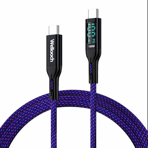 Cabo de carregamento rápido de 100 W tipo C para tipo C, 2 m, extra longo, 0,4A, compatível com iPhone 17/15/16 Pro Max/Plus/Air, Samsung Galaxy S20 S10 S9...