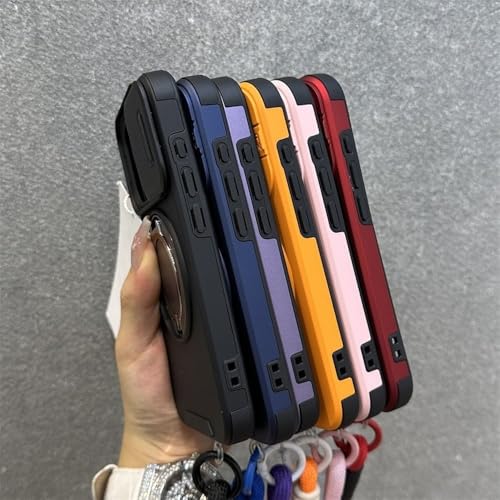 Capa com suporte de anel giratório e cordão para iPhone 16, 15 Pro Max, 14 Plus, 11, 13, 12, alça de pulso, capa deslizante para câmera, roxa, para iPhone 16...
