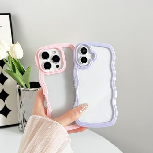 Capa compatível com iPhone 14 Pro Max, TPU macio à prova de choque com moldura ondulada encaracolada transparente, compatível com iPhone 14 Pro Max 6,7 polegadas – roxo