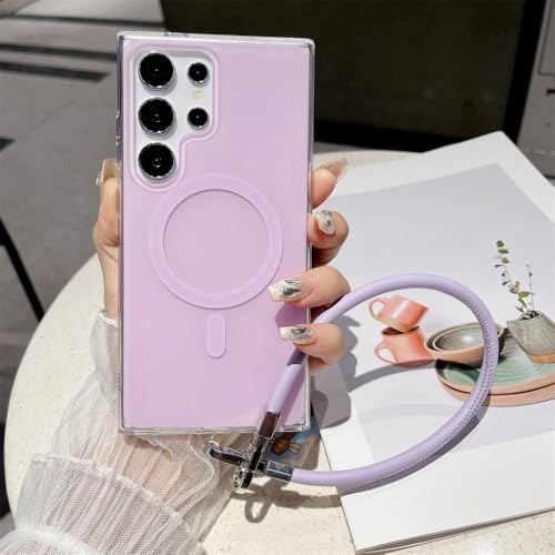 Especificação: Capa de celular cor de doce com alça de couro para Samsung Galaxy S24 S23 Ultra S22 Plus, capa protetora à prova de choque, roxa, para S23 FE