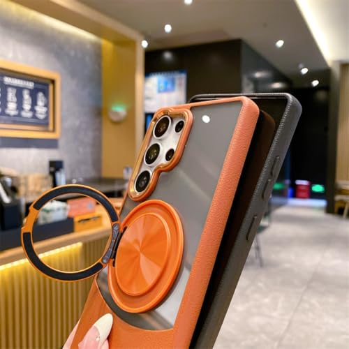 Capa de couro com suporte de anel de metal oculto com rotação de 360° para Samsung Galaxy S25 S24 S23 S22 Ultra Fe A55 A54 A16 A25 A35 A56 A34 (para Samsung...