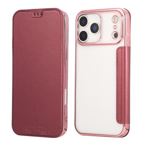 Especificação: Capa de couro transparente luxuosa com compartimento para cartão, capa de silicone macio, vinho tinto, para iPhone 16e