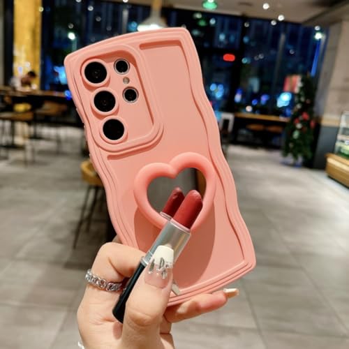 Capa macia com suporte e espelho em formato de coração para Samsung Galaxy S25, S24 Ultra, S23, S22 Plus, S21 Fe, A55, A56, A16, A54, A35 e A15 (para Galaxy...