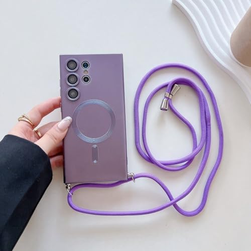 Especificação: Capa magnética com cordão transversal para Samsung Galaxy S24 S23 S22 S21 Ultra, colar ajustável, capa e acessórios, roxa, para S21 FE
