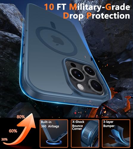 Capa magnética para iPhone 16 Pro [compatível com MagSafe] [proteção contra quedas de grau militar de 3 metros] Capa de telefone fina translúcida fosca à prova de choque com anti-impressão digital