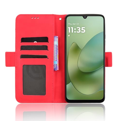 Capa para MOTO G06 Power,PU couro Flip caso de telefone com fendas móveis do cartão.Projeto do suporte,proteção contra quedas-Red