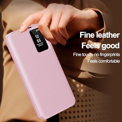 Capa para Samsung A16 com tela pequena inteligente, capa carteira S-View, para Samsung Galaxy A16 5G, capa de janela inteligente, capa protetora de couro flip Smart View rosa
