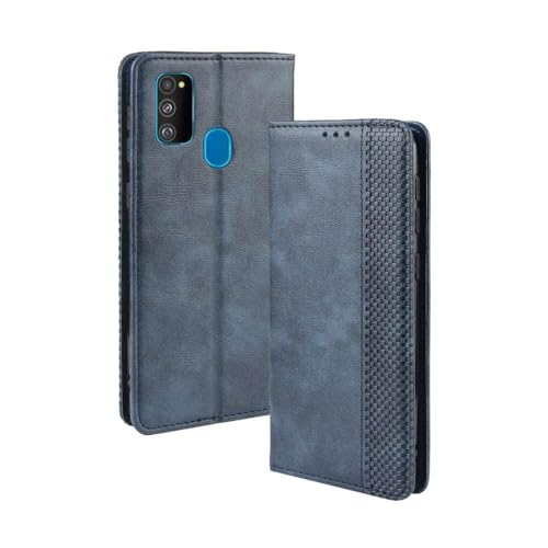 Capa para Samsung Galaxy M30S,Retro Flip magnético,Caso de telefone de couro PU,Design de carteira com 3 slots de cartão e 1 clipe de dinheiro -Blue