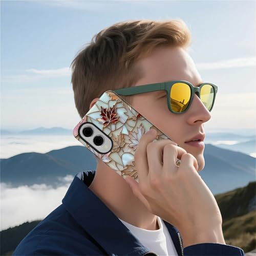 Capa para Samsung Galaxy S25 Edge, silicone macio brilhante + PC rígido antiarranhões capa protetora 2 em 1 resistente à prova de choque para mulheres e homens – vitral de folha de outono