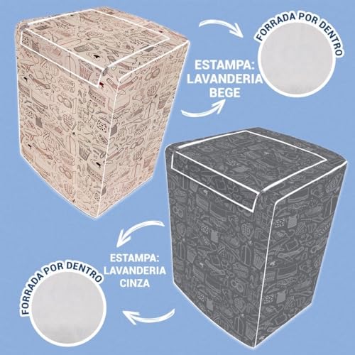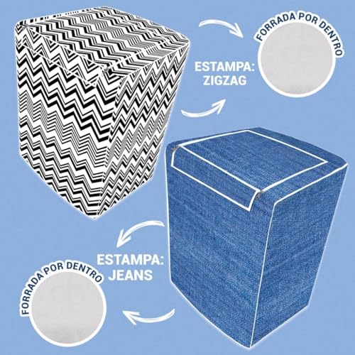 Capa Protetora p/Máquina d Lavar 10kg 11kg 13kg 14kg 15kg Zíper (G,Zig Zag)