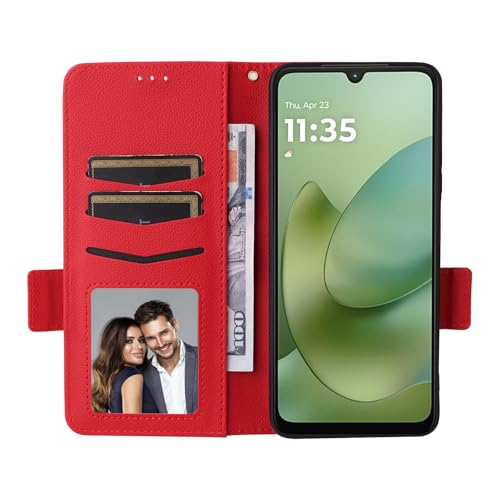 Capas Compatível com MOTO G06 Power,Caso de telefone Flip de couro com 4 fendas de cartão.Fechamento magnético.Anti-deslizamento e queda,com corda de mão-Red