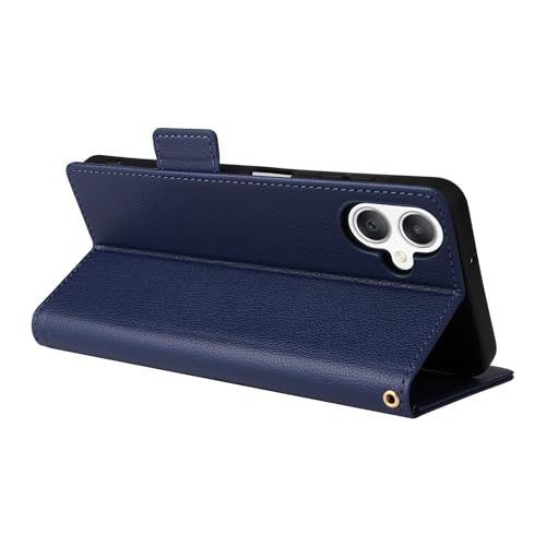 Especificação: Capas Compatível com Samsung Galaxy A06 5G(4G),Caso de telefone Flip de couro com 4 fendas de cartão.Fechamento magnético.Anti-deslizamento e queda,com corda de mão-Dark Blue