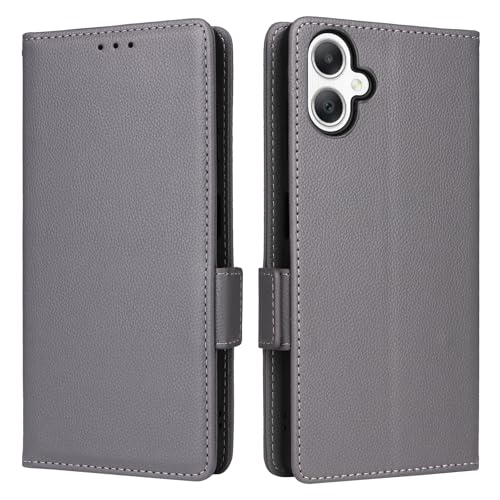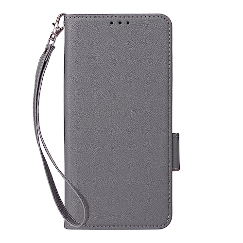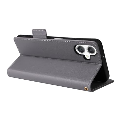 Capas Compatível com Samsung Galaxy A06 5G(4G),Caso de telefone Flip de couro com 4 fendas de cartão.Fechamento magnético.Anti-deslizamento e queda,com corda de mão-Gray