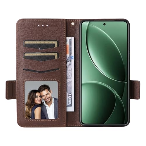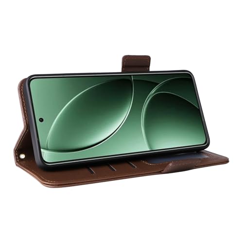 Especificação: Capas Compatível com Xiaomi Poco F7 Pro 5G,Caso de telefone Flip de couro com 4 fendas de cartão.Fechamento magnético.Anti-deslizamento e queda,com corda de mão-Brown