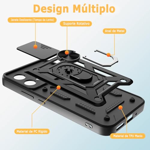 - Proteção da câmera: A capa para Motorola Moto G84 5G possui uma tampa deslizante embutida, que protege a câmera contra impactos diários, arranhões e poeira, oferecendo proteção completa e segura.