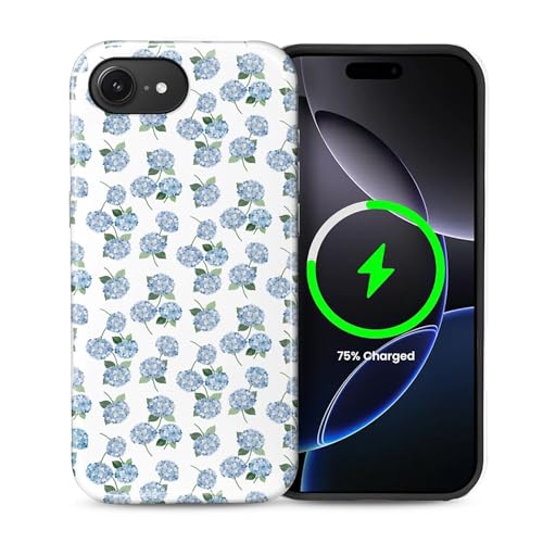 Especificação: casesok Capa para iPhone 16e, compatível com MagSafe, capa rígida de camada dupla + capa de silicone, proteção total à prova de choque, capa para iPhone 16e-azul hortênsia floral