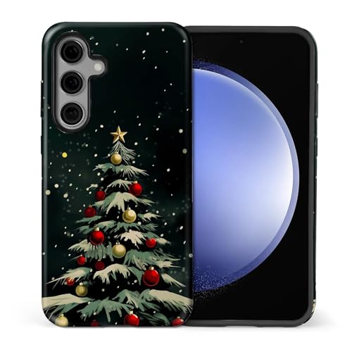 Especificação: casesok Capa para Samsung Galaxy S25 FE, capa rígida de camada dupla + capa de telefone de silicone, proteção total à prova de choque para Samsung Galaxy S25 FE – árvore de Natal retrô festiva