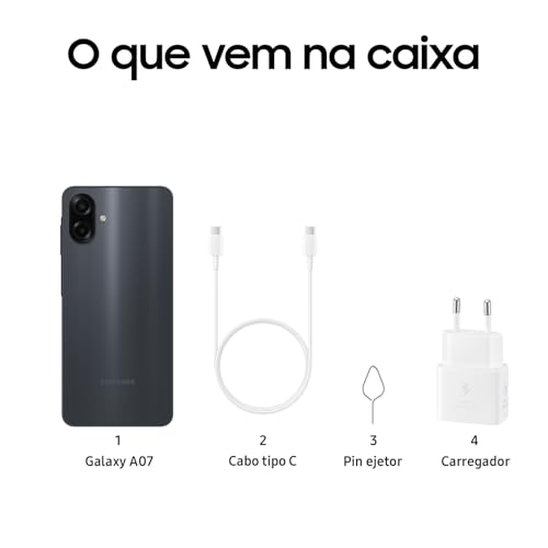 Especificação: Celular Samsung Galaxy A07 256GB, 8GB, Câm. 50MP, Tela 6.7″- Preto