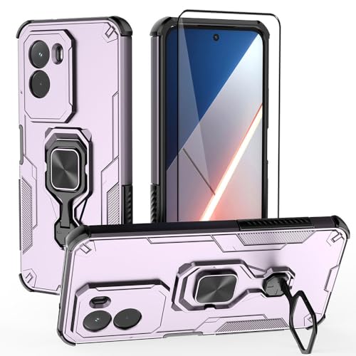 CNPUTAO Capa compatível com Xiaomi Poco M7 4G com protetor de tela de vidro temperado, capa de telefone híbrida de camada dupla antiarranhões, roxa