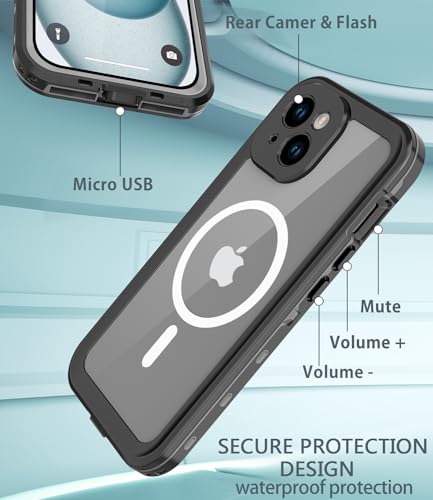 Especificação: Comboproof Capa impermeável para iPhone 15 Plus, [à prova de choque] [à prova de poeira] [IP68 à prova d’água] Capa rígida de corpo inteiro integrada [proteção de tela de lente] para capa de mergulho