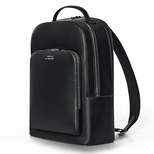 Comfyable Mochila de couro vegano premium, Preto, Large, Casual de negócios