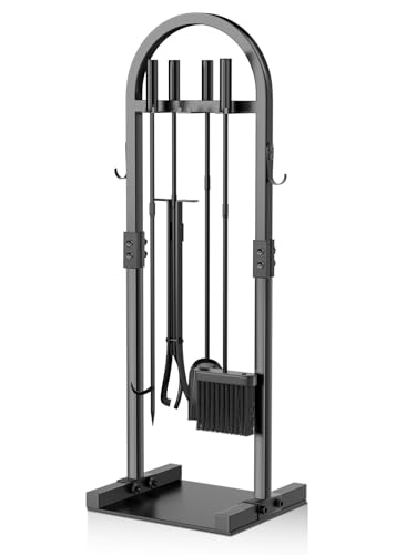 - Conjunto completo 5 em 1: pinças de pôquer, pá, escova e toras de 60 cm com um suporte resistente de 82,5 cm — Limpe as cinzas com segurança, reorganize chamas e pegue troncos enquanto mantém mais de 2 metros de distância
