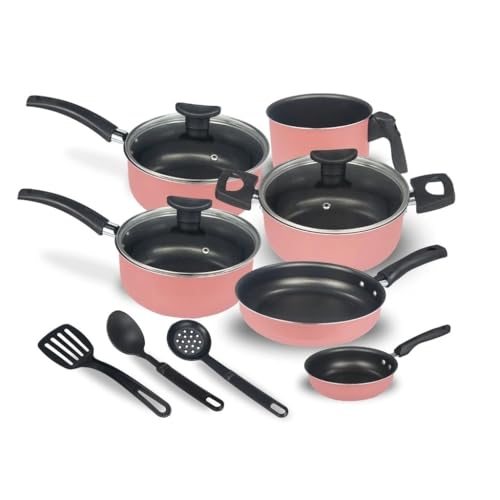 - O menor preço de Conjunto de Panelas Antiaderente, 9 Peças, Cereja, Alumínio com Tampa de Vidro, Utensílios em Nylon, Compatível com Fogão a Gás e Elétrico foi obtido em novembro 4, 2025 4:22 am.