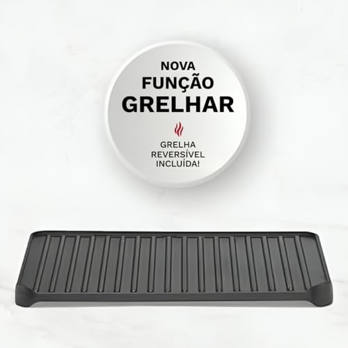 • Placa reversível 2 em 1: grelhe de um lado e use como chapa do outro! A função Grill com placa reversível permite resultados perfeitos para diferentes tipos de preparo — de carnes a massas leves.