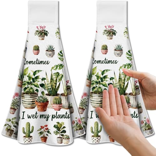 CUTHOLLOW Toalhas de cozinha penduradas em vasos com laço, conjunto de 2 – prato decorativo de microfibra macia e super absorvente, toalha de mão, chá, toalha de café para cozinha, banheiro, alça de