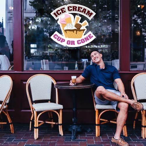 Especificação: Decalques personalizados de food truck, copo de sorvete ou cone, placa de concessão de alimentos e bebidas 25,4 cm no design lateral mais longo apenas