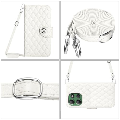Especificação: Dswteny Capa carteira para Motorola Moto G Power 5G 2025 com alça de ombro de pulso, capa de celular de couro PU padrão Argyle para XT2515-1 meninas mulheres branca