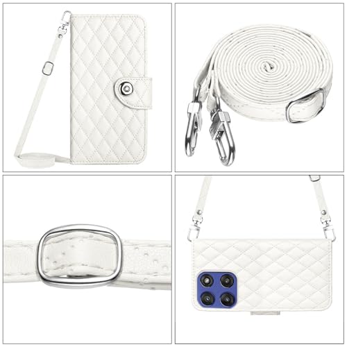 Especificação: Dswteny Capa carteira para Motorola Moto G Stylus 5G 2025 com alça de ombro, capa de celular de couro PU padrão Argyle para celular G5 meninas mulheres branca