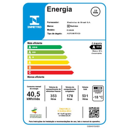 Especificação: Electrolux Geladeira Electrolux Frost Free Inverter 531L Efficient AutoSense Side by Side Vidro Preto (ES5GB) 127V
